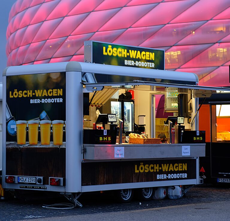Der Bierausschank ist eine wichtige Aufgabe bei vielen Veranstaltungen, wie zum Beispiel Fußballspielen, Festivals oder Partys. Dabei müssen viele Faktoren berücksichtigt werden, wie die Qualität, die Temperatur, die Hygiene und die Geschwindigkeit des Biers. Um diese Anforderungen zu erfüllen, hat die Firma BHS Systems einen mobilen Bierausschankwagen entwickelt, der Bier automatisch zapfen kann: den Lösch-Wagen Bier-Roboter.